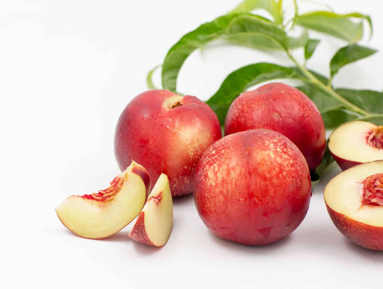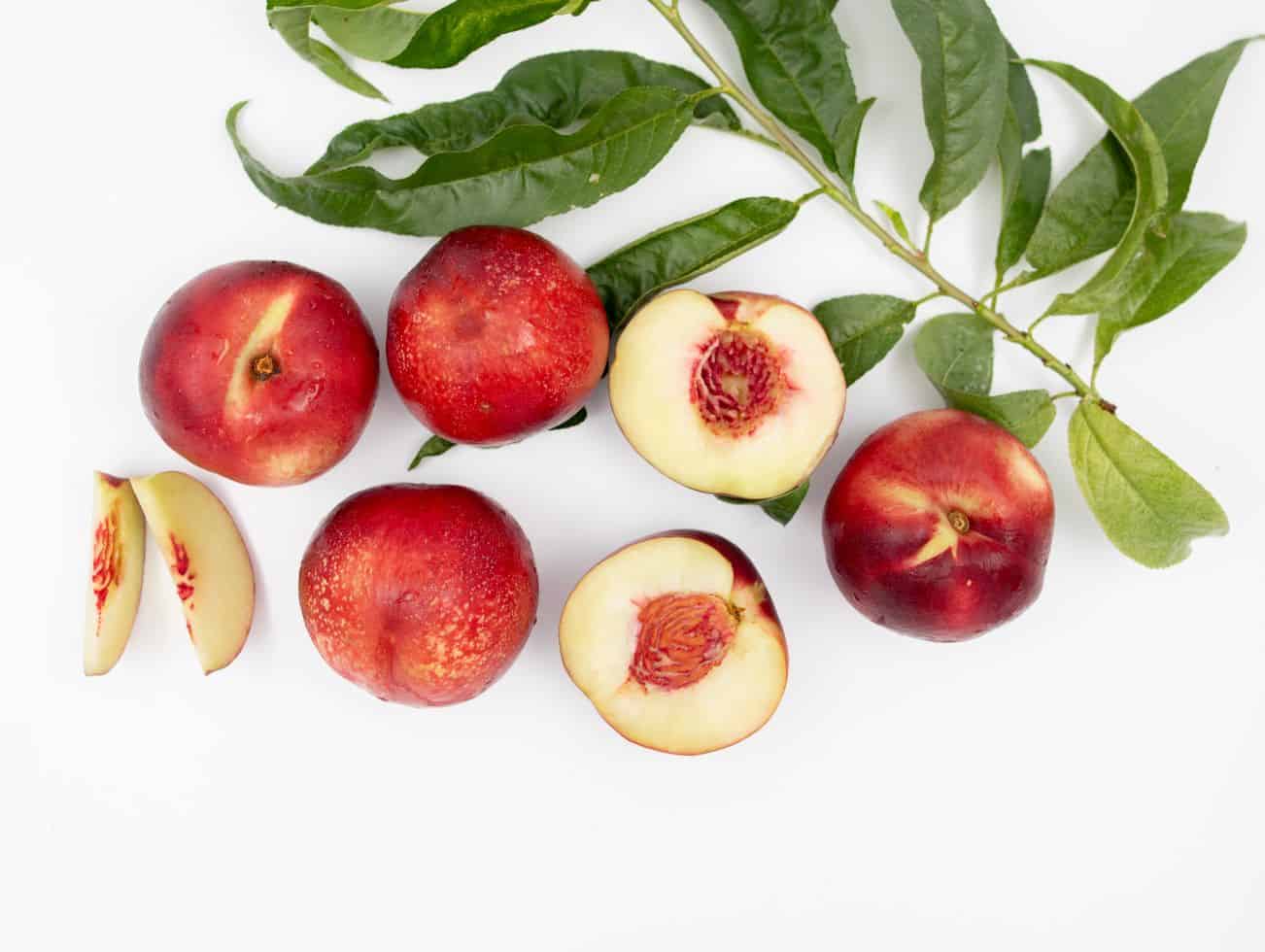Striking, bright red-skinned, white-fleshed nectarine with a clean finish and a floral aroma.